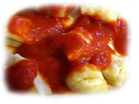2. Em uma vasilha, junte a batata espremida com a farinha de trigo e o ovo. Trabalhe a massa até que consiga ter formado uma bola. Numa superfície polvilhada com farinha, abra a massa em tiras compridas. Corte as tiras em pequenos pedaços de 1,5 cm cada.